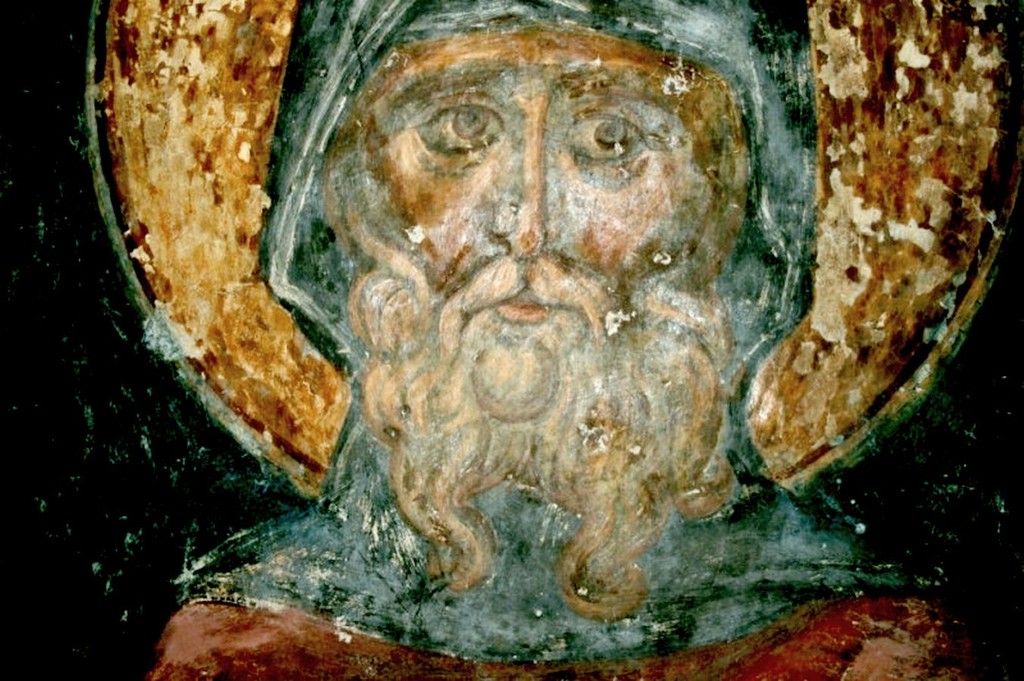 Лик Преподобного отца. Фреска монастыря Зарзма, Грузия. Середина XIV века.