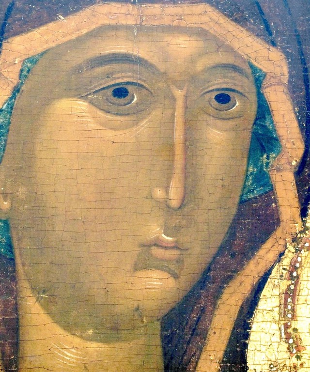 Икона Божией Матери "Одигитрия". Россия, первая четверть XVI века. Фрагмент.