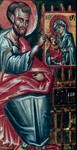 Именно в Риме Лука, под руководством Павла, составил Евангелие и Деяния апостолов, посвятив книги Феофилу, правителю Ахаии, который незадолго перед этим обратился в христианство. Добавляя детали, которых нет в первых двух Евангелиях, св. Лука рассказывает о жизни Спасителя, особенно подчеркивая Его милосердие и сострадание по отношению к грешным людям, которых он пришел посетить как Врач душ и телес. Так же и в Деяниях апостолов, рассказав о событиях, которыми было отмечено основание Церкви в Иерусалиме, Лука подчеркивает апостольские подвиги своего учителя, св. Павла, который больше всех других апостолов трудился ради проповеди евангельского слова.
