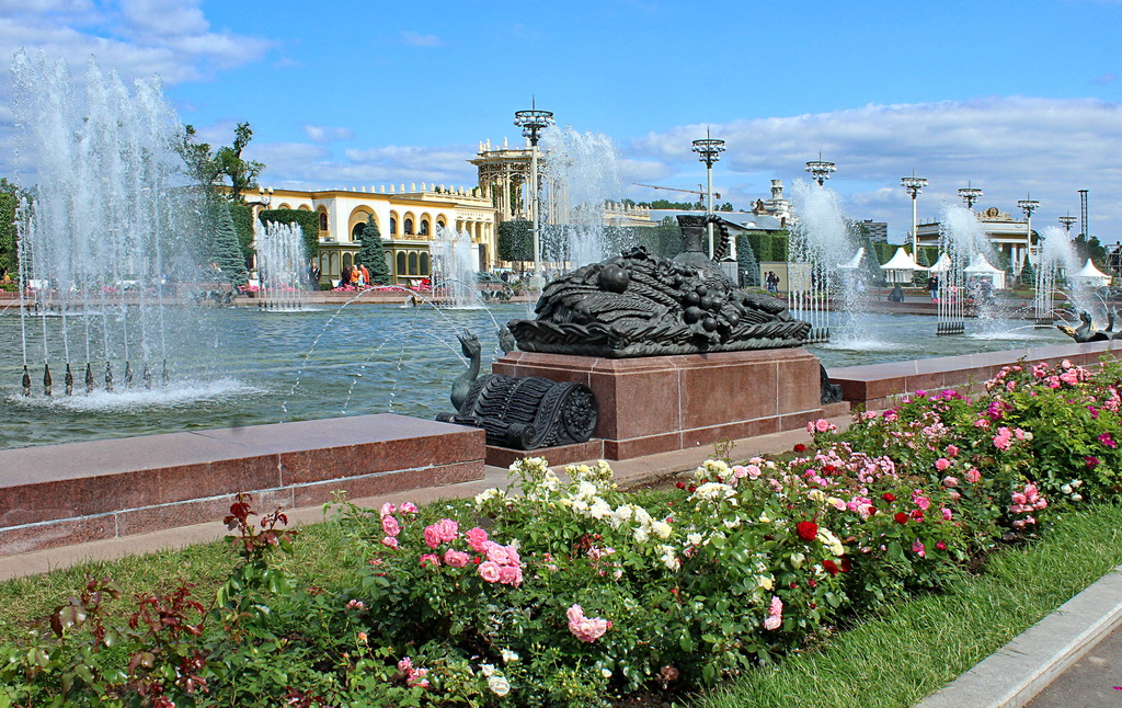 На снимке фрагмент фонтана Каменный цветок. Фонтан построен в 1954 г. ведущим архитектором СССР К. Топуридзе при активном участии скульптора П. Добрынина.