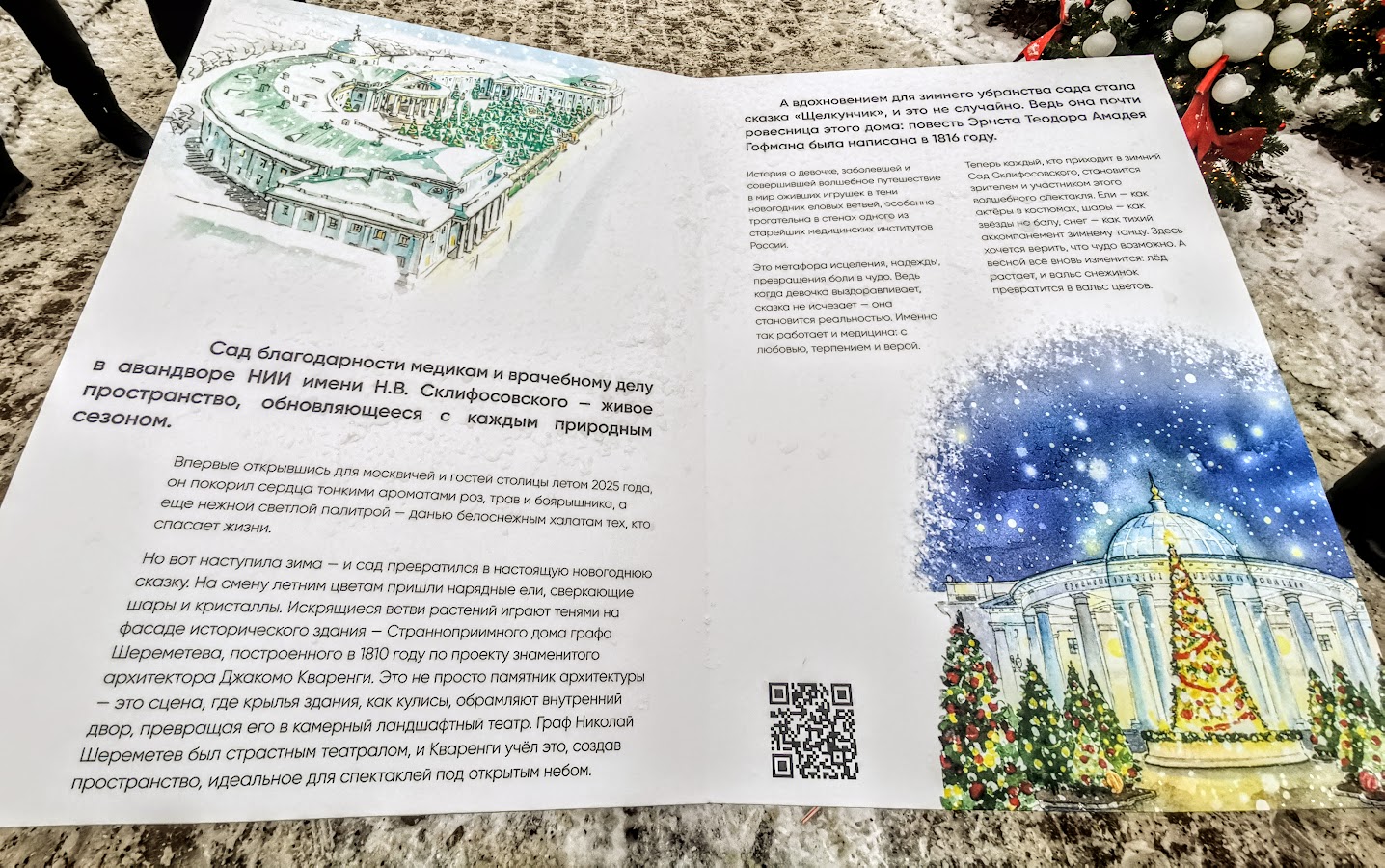 На картинке: В саду у НИИ скорой помощи им. Н. В. Склифосовского в преддверии Нового года создали праздничную зону.