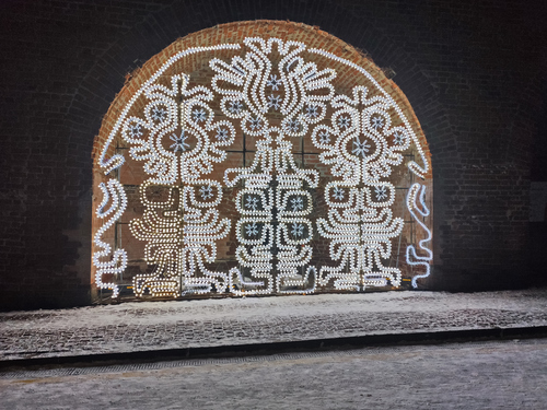 Световая инсталляция на стене Кремля.