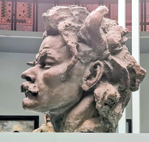 По первоначальному проекту, кроме основной фигуры писателя, к памятнику должны были примыкать ещё три скульптуры: фигура Матери, поднимавшей упавшее знамя, фигура Данко, протягивающего к небу пылающее сердце, и срывающийся с волны буревестник. Однако намеченное место было отдано для памятника В. П. Чкалову, и статуям Матери и Данко не нашлось места. Парящий по воздуху Буревестник переселился в барельеф на постаменте статуи.