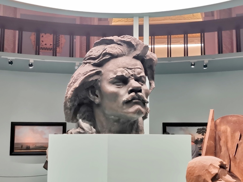 Черты лица писателя утрированы, волосы развеваются, словно крылья птицы, провидческий взор устремлён вдаль. Скульптор изобразил романтического героя, смело идущего навстречу стихии и готового ей противостоять.