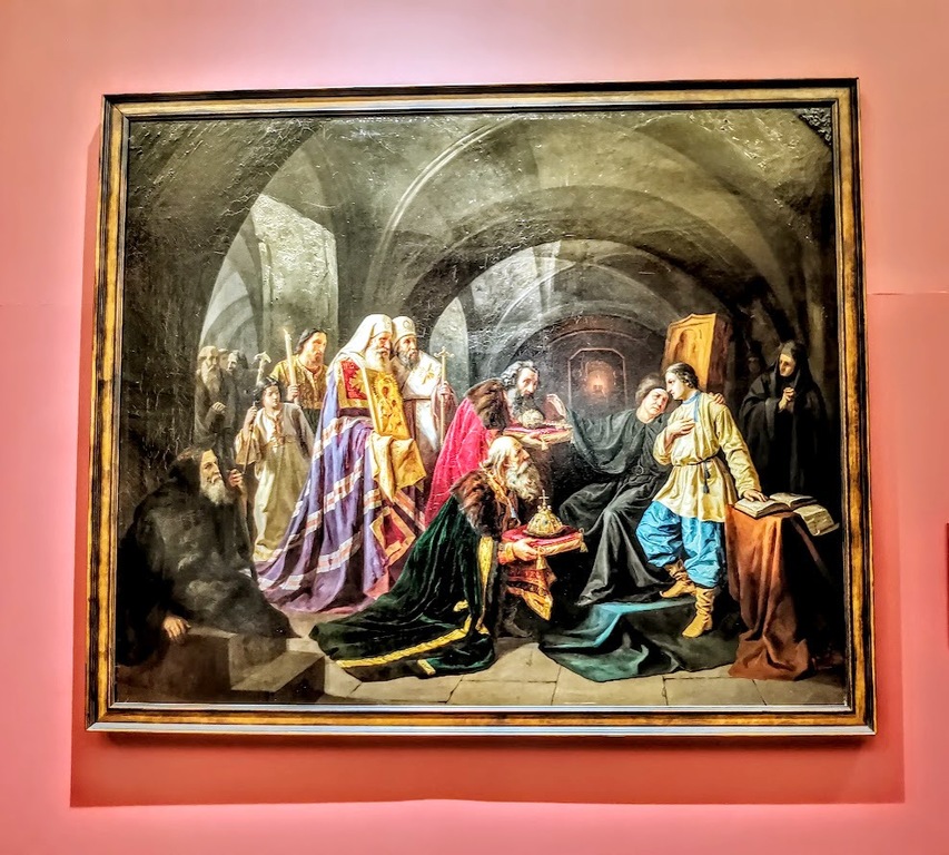 Картина Шустова является одной из бесчисленных интерпретаций сцены призвания Михаила Федоровича Романова на царство. Художник в описательной манере, типичной для середины XIX века, дает сюжету камерную трактовку. Вместо интерьеров Троицкого собора зритель видит низкие своды монастырской кельи, под которыми изображена процессия из бояр и духовенства — зрелых мужчин и мудрых старцев, предлагающих смущенному юноше занять царский трон. Натуралистическая выписанность, академическая старательность в изображении каждой детали характеризуют творчество Шустова в период его учебы в ИАХ, когда и было написано это полотно.