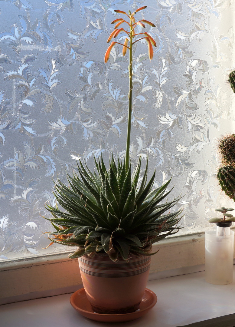 Редкое явление. Алоэ цветёт в январе. Цветение продолжалось с 23 января по 7 февраля 2026 года. Сейчас началось увядание.