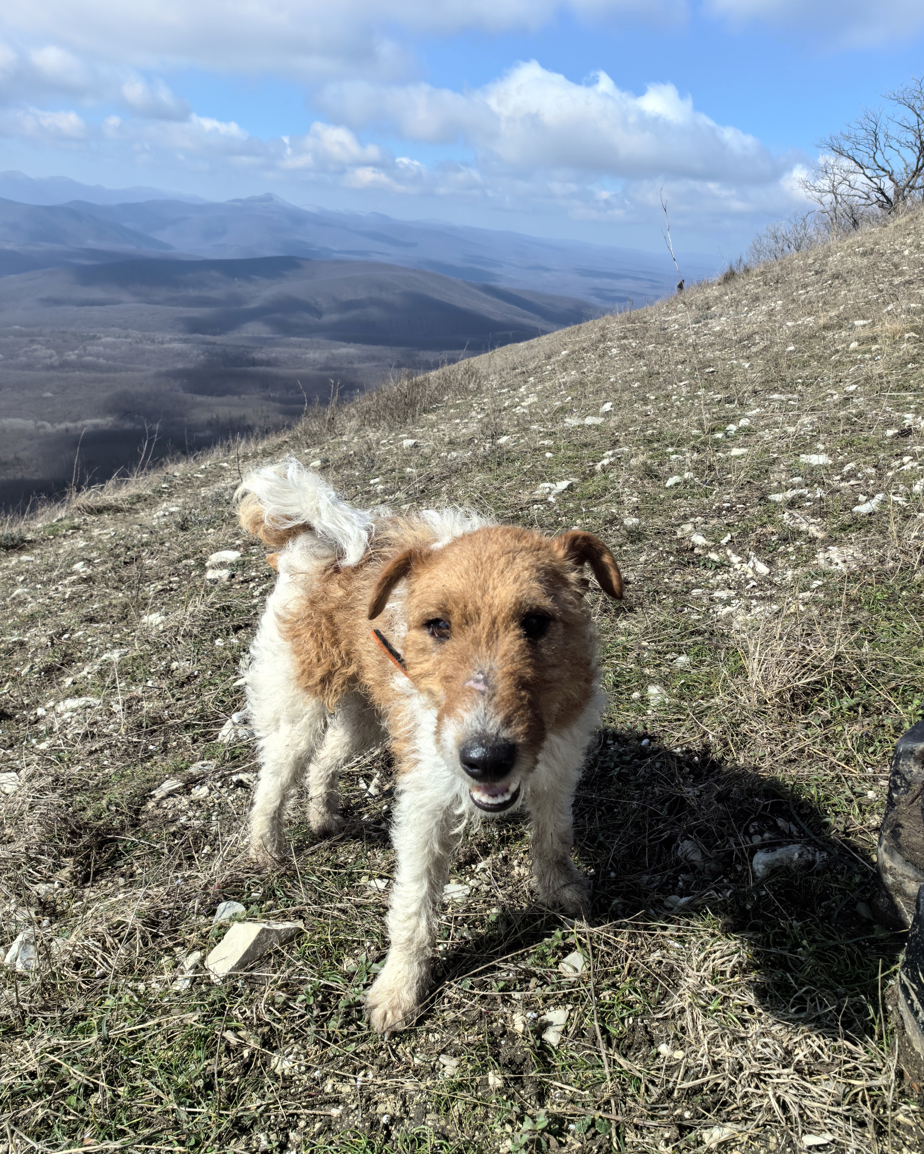 Этот мальчик встретился в конце февраля в походе (дочь не ходила, из рассказа инструктора похода). Бегал видимо не одну неделю, то ли потерялся, то ли его "забыли". Прибился к группе, везде следовал за ними. Инструктор забрала его с собой, ищет хозяев. Если не найдутся, а до сих пор не нашлись, оставит себе. Вот и в этот поход его взяли с собой. Дочь говорит, что далеко не убегает, умный и воспитанный мальчик