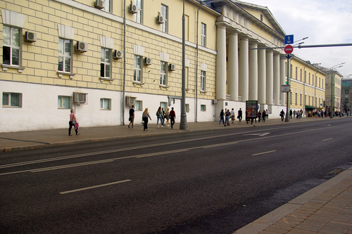 Баррикадная улица в Москве. «Вдовий дом». Здание сооружено в 1775 году для А.И. Глебова. В 1803 году в доме была устроена богадельня для вдов и сирот военных и чиновников, тогда же он получил название «Вдовий дом»; затем до 1812 года располагалось Александровское девичье училище. Во время московского пожара 1812 года здание сильно пострадало и было перестроено по проекту архитектора Д.И. Жилярди. В детские годы в доме жил русский писатель А.И. Куприн. В советское время в здании размещался институт усовершенствования врачей. В настоящее время дом занимает Российская медицинская академия последипломного образования (РМАПО) и медицинский информационный центр. Сентябрь 2024.